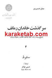 کتاب سرگذشت خاندان رمانف که در سال هزار و سیصد و پنجاه و شش چاپ شده می باشد.این اثر توسط میشل دو سن پیر نوشته و به دست عیسی بهنام ترجمه شده است.که چاپ آن بر عهده ی نشر موسسه انتشارات و چاپ‬‏‫ بوده است.مجلد سوم از اثر سرنوشت و سرگذشت خاندان رمانف که تحت اسم سقوط معرفی می گردد از انقلاب فوریه هزار و نهصد و هفده شروع می شود و با از میان رفتن خاندان امپراتوری در زیرزمین های خانه ایپاتیف در سال هزار و نهصد و هجده ژوییه به آخر می رسد.شانزده ماه به اندازه ی کافی بوده است تا سفینه امپراتوری از بین برود و متحول گردد و رمانف ها از پادشاهی مخلوع شوند و کشور روسیه زیرورو گردد و جهان رنگ دیگری به خویش گیرد. اتفاقات ظاهر شدن کمونیسم که نظیرش در تاریخ بشریت نمایان نشده است با تغییرات صورت گرفتن در دو مرحله یکی انقلاب فوریه و دیگری انقلاب اکتبر از بین ویرانی هایی که این طوفان ایجاد نموده بود بیرون آمد. برای خرید کتاب سرگذشت خاندان رمانف با ما تماس بگیرید.
