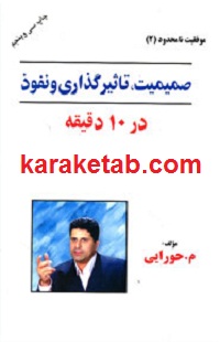 از سري كتابهاي موفقيت نامحدود مجتبي حورايي : گفتند ؛براي پشت جلد اين كتاب متني را تهيه كن. گفتم : حتي يك نفر را نمي شناسم كه از خواندن اين كتاب بي نياز باشد. هركه با ديگري ارتباط دارد بايد بسيار موثرتر از اين باشد و مي تواند كه چنين باشد. گفتند : همين اشاره كافي است…