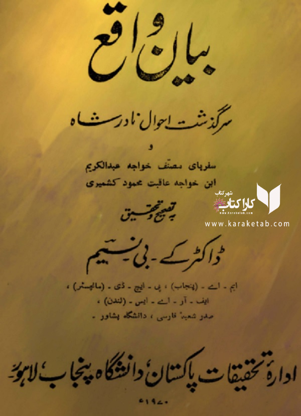 خرید کتاب بیان واقع: سرگذشت احوال نادرشاه اثر عبدالکریم کشمیری تصحیح و تحقیق داکرکی بی نسیم چاپ انتشارات اداره تحقیقات پاکستان