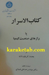 درباره محمد زکربای رازی این دانشمند برجسته کتاب های بسیاری نوشته شده است و خود ایشان نیز کتاب های مشهوری را تالیف نموده است یکی از این کتب کتاب الاسرار یا رازهای صنعت کیمیا است که راجع به کیمیاگری و علوم کشف ماده است که توسط حسنعلی شیبانی مترجم خوب ایرانی در اوایل دهه چهل در سال چهل و سه توسط انتشارات دانشگاه تهران به چاپ رسانید این کتاب شومیز و نسبتا قطور است کتاب حاضر یکی از بهترین کتب راجع به علوم کیمیاگریست و در دهه هفتاد نیز باز چاپ شده است.برای خرید کتاب الاسرار و رازهای صنعت کیمیا تماس بگیرید