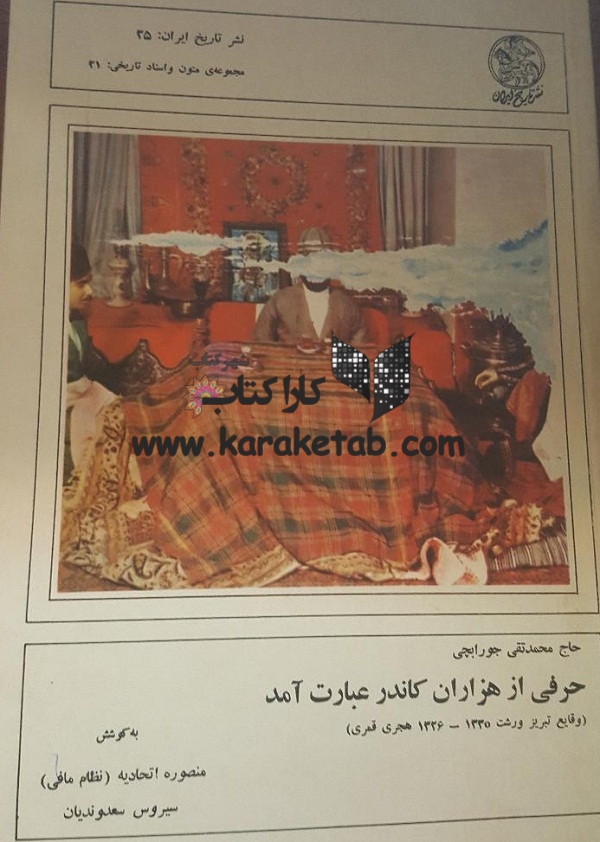 خرید کتاب حرفی از هزاران کاندر عبارت آمد اثر حاج محمدتقی جورابچی به کوشش منصوره اتحادیه از سری کتابهای نشر تاریخ ایران سال 1363 در کارا کتاب فروشگاه کتاب نایاب موجود است برای خرید کتاب مطابق روش خرید اقدام نمایید.